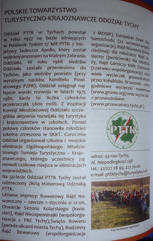 W wydanej publikacji Ekonomia społeczna – organizacje pozarządowe. Tyski Informator. znalazło się miejsce dla Oddziału PTTK wraz z informacjami o planowanych imprezach KTK „GRONIE”.