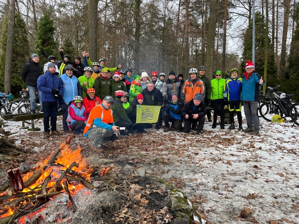 Tak jak w latach poprzednich i w tym roku Klub Turystyki Kolarskiej GRONIE działający przy Oddziale PTTK w Tychach zorganizował rowerowe powitanie Nowego Roku, które było już dwudziestą siódmą edycją Rowerowego Rajdu NOWOROCZNEGO. O godzinie 12 w południe pierwszego stycznia nowego roku spotkaliśmy się przy napisie „TYCHY” na al. Niepodległości skąd ruszyliśmy ścieżkami rowerowymi i drogami leśnymi do mety w Gostyni na plac przy pomniku Ofiar Września 39. Tam czekali już na nas przy płonącym ognisku turyści – rowerzyści z innych klubów rowerowych naszego województwa. Po zarejestrowaniu się, każdy z uczestników otrzymał pamiątkową naklejkę. Po życzeniach organizatorów, symboliczną lampką szampana wznieśliśmy toast za 2026 rok. Na ognisku piekliśmy kiełbaski, a podczas ich pałaszowania dyskutowaliśmy o planach swoich wyprawy i wycieczek rowerowych. Z głowami pełnymi pomysłów już indywidualnie wracaliśmy do domów. Blisko 60-ciu zatwardziałym rowerzystom nie przeszkadzał śnieg, mały mróz i śliskie nawierzchnie we wzięciu udziału w tegorocznej imprezie. Dziękujemy za wspólne powitanie 2026 roku.